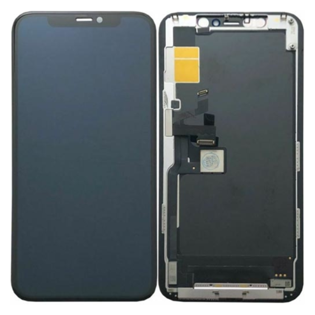Display completo nero Soft OLED per iPhone 11 Pro con frame, compatibile con fotocamera anteriore e sensore di prossimità. Qualità A+ (Superior Quality).